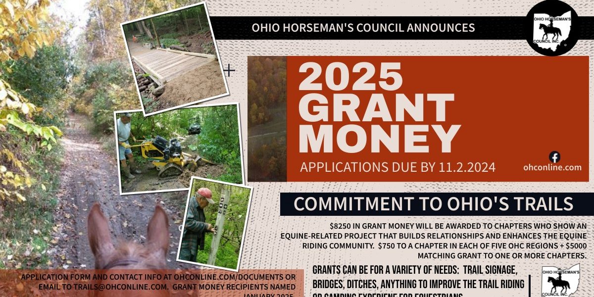 If you have a trail or campground needing improvement, but don’t have the money, apply for an OHC grant by November 1. The application is attached and all you need to do is apply. Awards given January, 2025. OHC Chapters only.